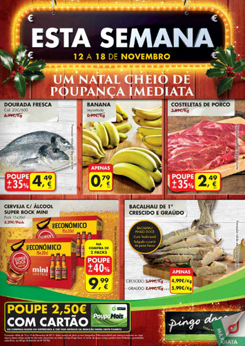 Folheto Pingo Doce - Novidades - Campanhas - Promoções - Oportunidades - Poupança Imediata - Poupe metade do valor - 12 de Novembro a 18 de Novembro