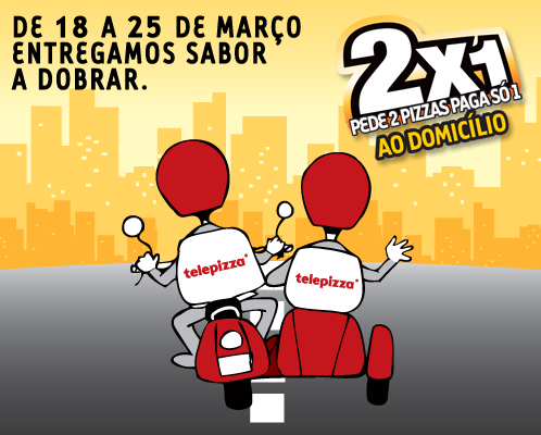 Aproveite mais uma excelente campanha da Telepizza para juntar a família ou amigos e por cada pizza encomendada, a segunda é grátis. Agarre todas as oportunidades, descontos e promoções disponíveis. A entrega ao domícilio é grátis. Trata-se de uma campanha válida de 18 de Março a 25 de Março.