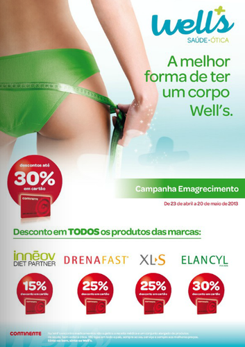 O novo folheto Well's com especial destaque para Emagrecimento apresenta diversas oportunidades com os preços baixos do costume. Aproveite todas as promoções e descontos disponíveis. Os descontos Cartão Continente encontram-se assinalados. Trata-se de uma campanha válida de 23 de Abril a 20 de Maio.
