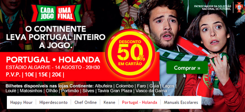 Portugal x Holanda - Promoções Continente - Novidades - Campanhas - 14 de Agosto - Estádio Algarve - 50% de Desconto em Cartão Continente