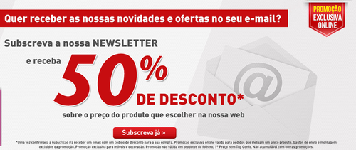 Aproveite mais uma oportunidade Conforama de obter 50% de Desconto ao subscrever a newsletter.