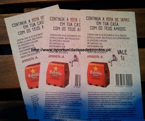 Novos vales desconto Estrella Damm de 1€ até 31 agosto.
