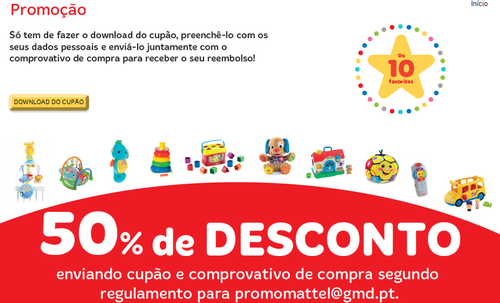Promoções Fisher Price - 50% de Desconto - Reembolso