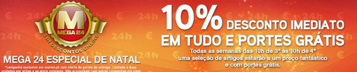 Trata-se de uma campanha com especial destaque para o Natal que lhe permite obter 10% de Desconto Imediato em tudo e portes grátis.