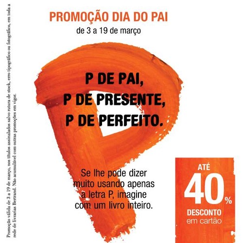 Aproveite as diversas oportunidades Bertrand com descontos até 40% com especial destaque para o Dia do Pai. Trata-se de uma campanha válida de 3 de Março a 19 de Março.