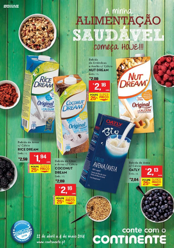 O novo folheto Continente com especial destaque para Alimentação Saudável apresenta diversas oportunidades a preços baixos. Aproveite todas as promoções e descontos. Os produtos/artigos com Descontos em Cartão Continente e/ou Super Preço (Descontos Imediatos) encontram-se assinalados. Trata-se de uma campanha válida de 22 de Abril a 4 de Maio.