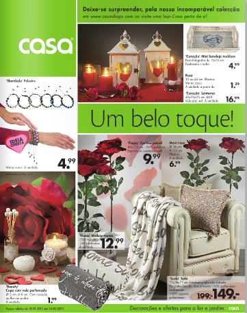O folheto Casa está repleto de novidades e destaques no que diz respeito a artigos de decoração com os habituais preços baixos. Aproveite todas as oportunidades, descontos e promoções disponíveis. Trata-se de uma campanha válida de 28 de Janeiro a 24 de Fevereiro.