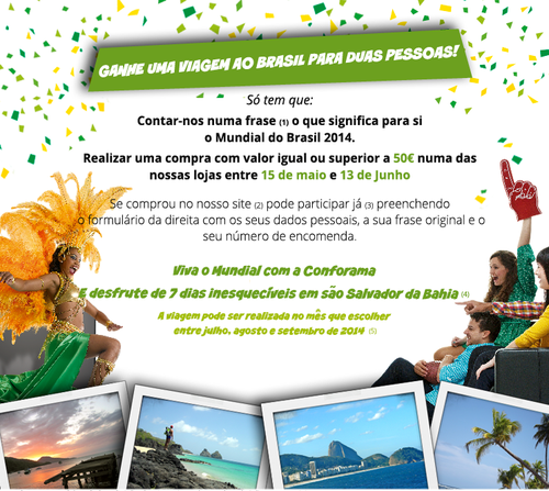 Para se habilitar a ganhar a viagem ao Brasil, basta ao cliente Sport Zone fazer uma compra superior a 30€ até dia 22 de julho e preencher o cupão, estando desde logo habilitado ao sorteio que se irá realizar no dia 31 de julho. O vencedor será comunicado em cartaz nas lojas Sport Zone e será contactado pessoalmente.