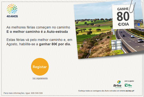 Aproveite a campanha Brisa que lhe permite obter 80 euros por dia em Portagens.
