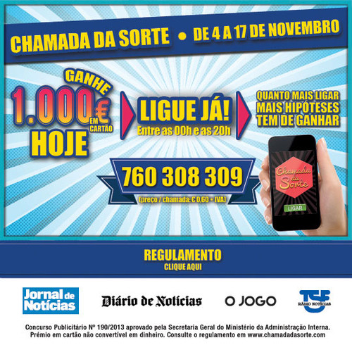 Vai atendê-la? - Chamada da Sorte - 4 de Novembro a 17 de Novembro 06.11.13 Dica da Carla Pereira Sousa. Tags:carla pereira sousachamada da sortenovembro link do post comentar favorito