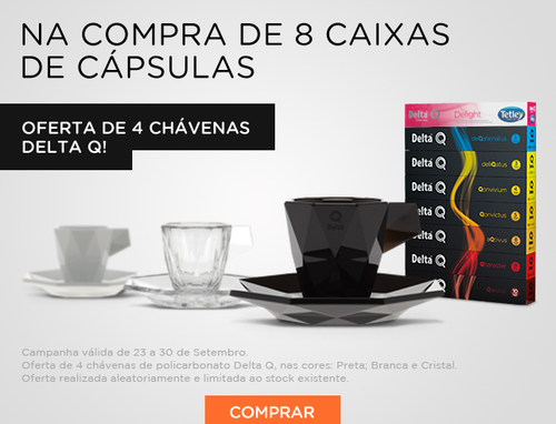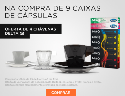 Aproveite mais uma campanha Delta Q com a possibilidade de obter 4 chávenas na compra de 8 caixas de cápsulas.