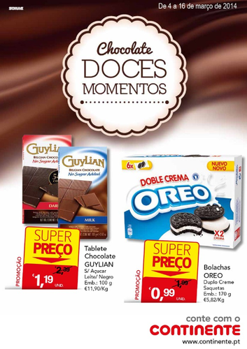 Promoções Continente - Novo Folheto Continente - 4 de Março a 16 de Março - Campanhas - Novidades - Oportunidades - Cartão Continente - Super Preço - Descontos Imediatos - Especial Chocolate