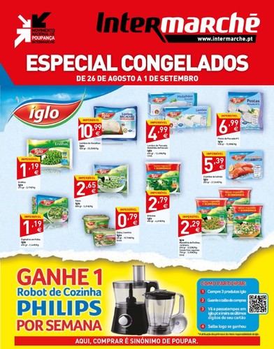 O Novo Folheto Intermarché com especial destaque para congelados já se encontra disponível com diversas oportunidades a preços baixos. Aproveite todas as promoções e descontos. Trata-se de uma campanha válida de 26 de Agosto a 1 de Setembro.
