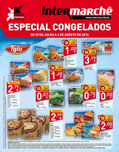 O Novo Folheto Intermarché com especial destaque para congelados já se encontra disponível com diversas oportunidades a preços baixos. Aproveite todas as promoções e descontos. Trata-se de uma campanha válida de 29 de Julho a 4 de Agosto.