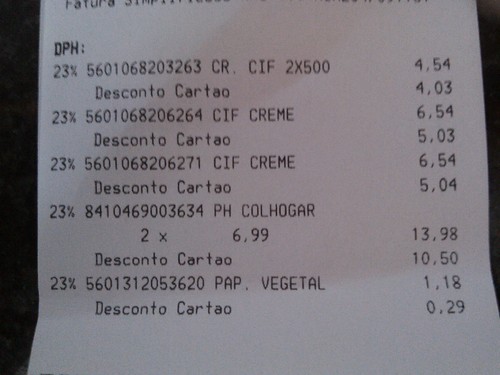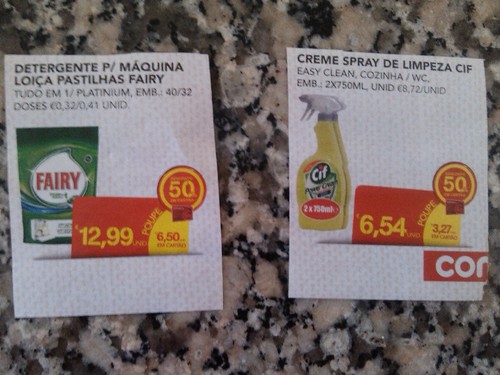 Para quem ainda não usou o cupão da revista Continente, 30% em Cif, termina hoje a possibilidade de acumular com os 50%. O vale Fairy maquina da revista Para Mim pode ainda ser acumulado esta semana.