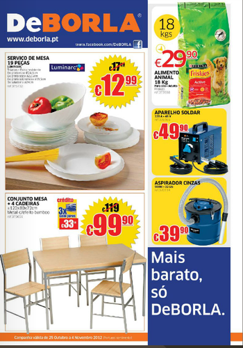 O novo folheto/catálogo DeBorla está repleto de novidades e oportunidades ao melhor preço. Aproveite todos os descontos e promoções disponíveis e tenha em conta que a campanha é válida apenas de 25 de Outubro a 4 de Novembro.