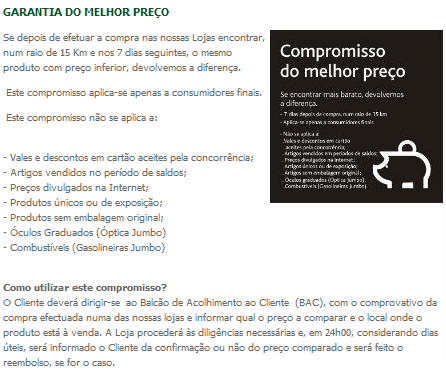 Jumbo - Garantia dos Artigos de Folheto