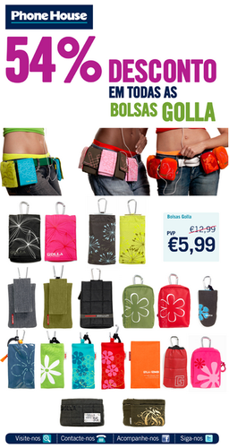 ÚLTIMAS UNIDADES! Bolsas Golla - TUDO a 5.99 euros! - Phone House 15.07.13 Dica da Carla Pereira Sousa. Tags:bolsascarla pereira sousagollaphone house link do post comentar favorito