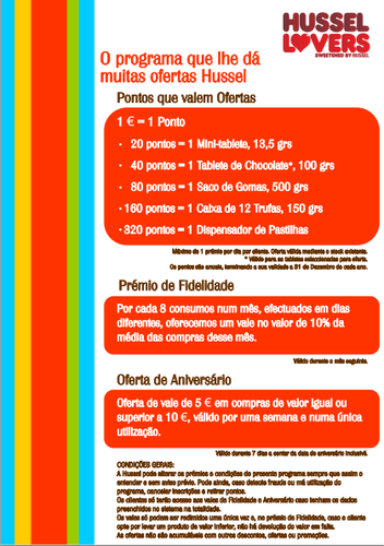 Campanha válida de 8 a 16 de fevereiro de 2014, limitada ao stock existente e não acumulável com outras campanhas em vigor. A Oferta da embalagem de chocolates Hussel não é válida na Loja Online."