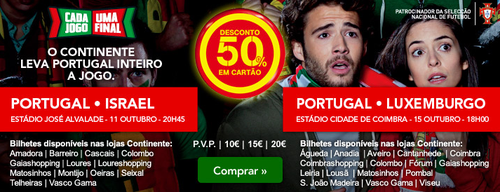 Portugal x Israel e Portugal x Luxemburgo - Promoções Continente - Novidades - Campanhas - 50% de Desconto em Cartão Continente