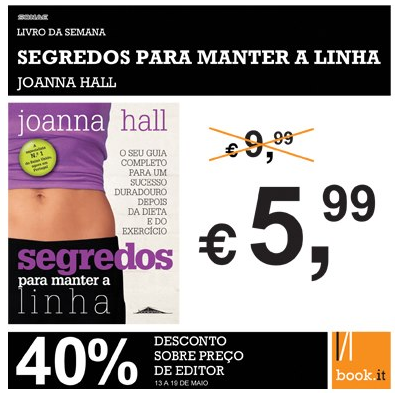 Aproveite a excelente campanha book.it que lhe permite obter 40% de desconto sobre o preço de editor no livro da semana. Agarre todas as oportunidades, descontos e promoções porque são excelentes formas de comprar e ao mesmo tempo de poupar.