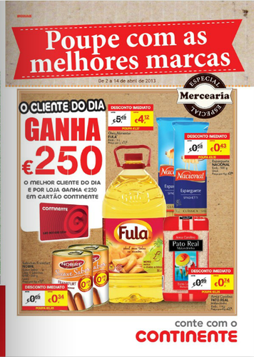 O novo folheto Continente com especial destaque para Mercearia já se encontra disponível com muitas oportunidades a preços baixos. Aproveite todos os descontos, novidades e promoções. Os produtos com descontos Cartão Continente encontram-se assinalados.