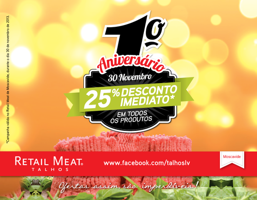 25% desconto imediato em todos os produtos - Talhos LV (loja Retail Meat de Moscavide) - 30 de Novembro 26.11.13 Tags:25% de desconto imediatomoscavidenovembro link do post comentar favorito