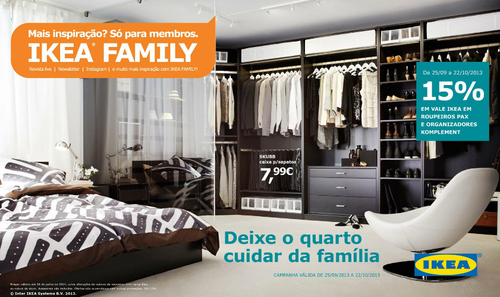 O folheto/catálogo Ikea apresenta diversas oportunidades com especial destaque para os quartos. Aproveite todas as promoções e descontos disponíveis. Tenha em conta também o Vale Ikea na compra de roupeiros pax e organizadores komplement. Trata-se de uma campanha válida de 25 de Setembro a 22 de Outubro.