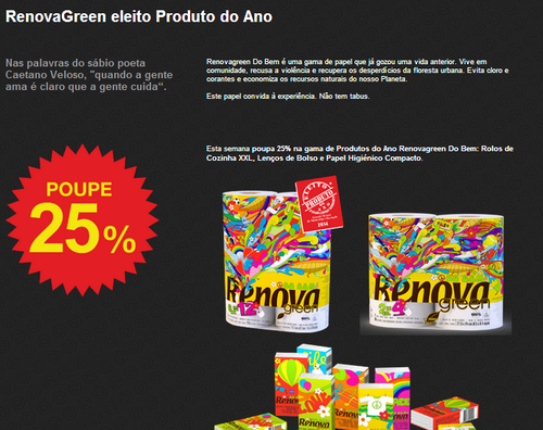 25% de desconto imediato no papel higiénico Renova 4 Folhas Déco