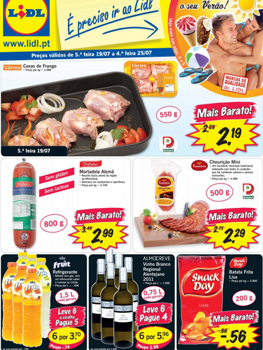 O Lidl apresenta as suas promoções num folheto e não faltam novidades sempre a baixo custo. Trata-se de uma campanha para a Região Norte e decorrerá de 19 de Julho a 25 de Julho.