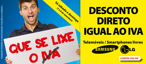 Aproveite mais uma campanha Radio Popular com Desconto Direto igual ao IVA em todos os telemóveis e smartphones livres Samsung e LG, válida para todas as lojas (exceto espaços outlet). Tenha em conta todas as oportunidades, descontos e promoções. Trata-se de uma campanha válida apenas de 7 de Setembro a 8 de Setembro.