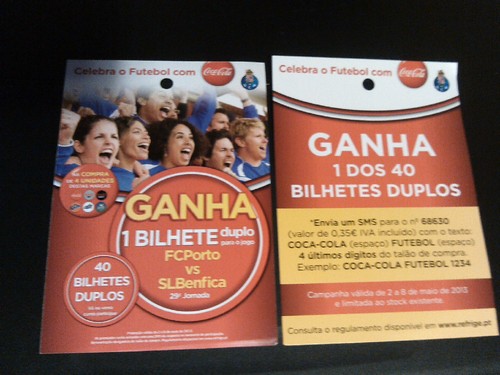 Ganha 1 Bilhete duplo de Futebol - FCPorto vs SLBenfica 04.05.13 Dica da Carla Pereira Sousa.Regulamento em www.refrige.pt Tags:benficabilhetecarla pereira sousafcportoregulamentoslb link do post comentar favorito
